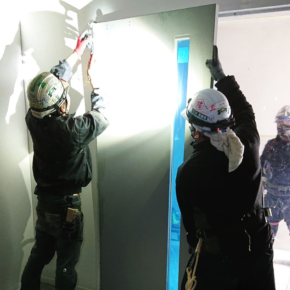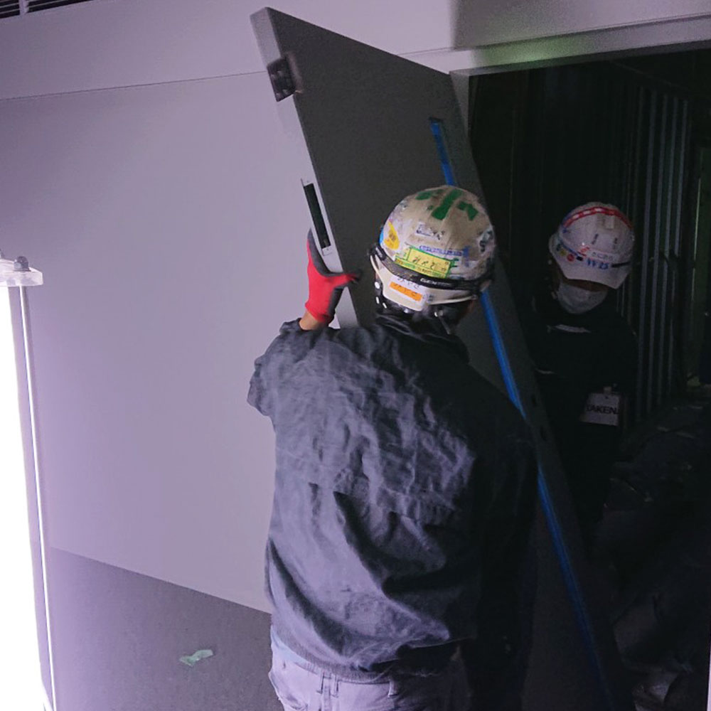 作業内容 主に都内・郊外の商業ビルの鋼製ドア・サッシ取付業務です。 主な作業内容のご案内 搬入作業 溶接作業 扉の加工 扉吊り込み 金物等の取付 現場風景 作業内容の概要 ドア・枠等の搬入 枠の溶接作業 扉の加工 扉の吊り込み 金物類(錠前・アーム・戸当たり)の取付作業 最終確認後に引き渡し ・動作チェック ・消防検査 ・建築検査 完了 数年後に是正工事 ※現場により手順変更あり