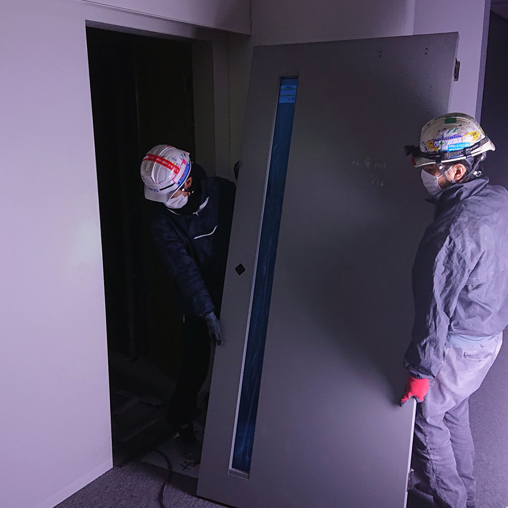 作業内容 主に都内・郊外の商業ビルの鋼製ドア・サッシ取付業務です。 主な作業内容のご案内 搬入作業 溶接作業 扉の加工 扉吊り込み 金物等の取付 現場風景 作業内容の概要 ドア・枠等の搬入 枠の溶接作業 扉の加工 扉の吊り込み 金物類(錠前・アーム・戸当たり)の取付作業 最終確認後に引き渡し ・動作チェック ・消防検査 ・建築検査 完了 数年後に是正工事 ※現場により手順変更あり
